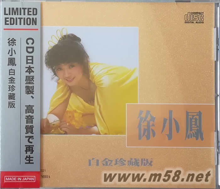 徐小鳳白金珍藏版 (SONY日本限量版CD)(m58.net) 白金珍藏版系列 共10個(gè)品種 甄妮 陳秀雯 林志美 何嘉麗 蔡楓華 6 Pair半 + 城市民歌 Blue Jeans 藍(lán)戰(zhàn)士 林憶蓮 徐小鳳 同名 徐小鳳 新曲與精選