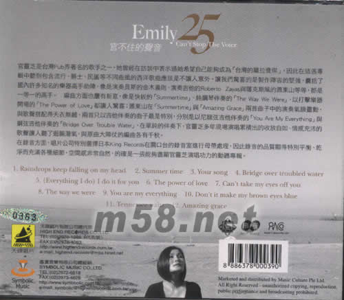 官不住的聲音(m58.net) 準(zhǔn)備了二十五年,資深歌手官靈芝發(fā)行個(gè)人首張爵士專輯,包括黃小琥、王珍妮、李度及傅薇,幾位國(guó)內(nèi)「 PUB界」的歌后通通來(lái)道賀,官靈芝「阿姐」的稱號(hào)不是蓋的,也可想見(jiàn)她的分量與地位。 官靈芝從民歌、流行歌曲、到西洋音樂(lè),再到爵士,轉(zhuǎn)戰(zhàn)各地 PUB時(shí)間長(zhǎng)達(dá)二十五年,終于推出第一張爵士專輯「官不住的聲音」,近四分之一世紀(jì)都在唱,幾乎天天有演唱,中間甚至有快十年的時(shí)間,每天都有四到八場(chǎng)的現(xiàn)場(chǎng)演出,如果以平均每天四場(chǎng),每場(chǎng)八首歌的數(shù)量計(jì)算,她已經(jīng)唱超過(guò) 36500場(chǎng),這個(gè)紀(jì)錄讓其它歌手望塵莫及。 對(duì)這位「 PUB大姐大」的歌喉,黃小琥直說(shuō),就像「酒越沉越香」,「她在我們平常唱 PUB的地方就是大姐級(jí)的。隔了二十五年第一次發(fā)這張專輯,真的為她開(kāi)心,她的唱功真的沒(méi)有話說(shuō)?!?br> 官靈芝這張「官不住的聲音」爵士專輯,采取「不插電」、「同步錄音」的精制錄音方式,有著純手工制作的質(zhì)感和靈魂,連歌手的呼吸聲,還有樂(lè)器在錄音空間中的「殘響」等細(xì)節(jié),都一一保留。