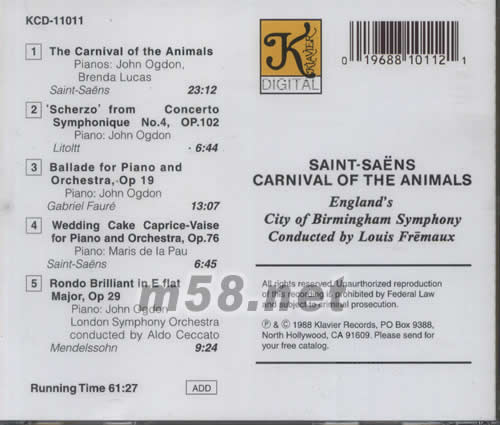 圣桑 動物狂歡節專輯背面圖片