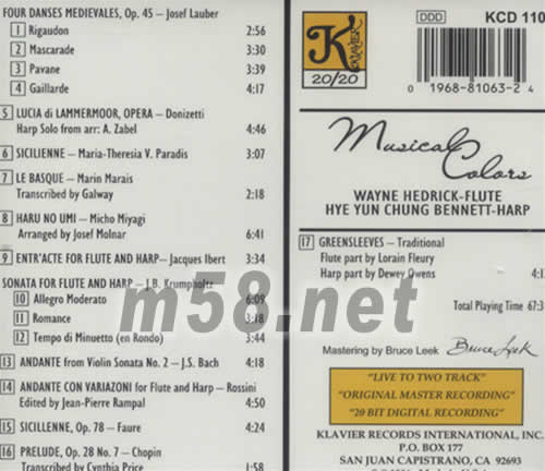 音樂(lè)的色彩MUSICAL COLORS(長(zhǎng)笛與豎琴奏鳴曲)專(zhuān)輯背面圖片