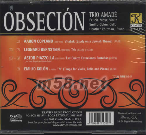 價格為估,以實到貨為準! 大小提琴&鋼琴三重奏OBSECION(m58.net) 小提琴:FELICIA MOYE 大提琴:EMILIO COLON 鋼琴:HEATHER COLTMAN