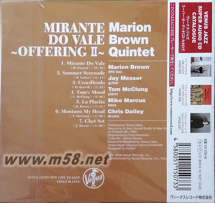 動(dòng)人心靈 薩克斯、吉它、貝斯多重奏 SACD (僅限SACD機(jī)播放)(m58.net) Marion Brown, alto sax Jay Messer, guitar Tom McClung, piano Mike Marcus, bass Chris Dailey, drums