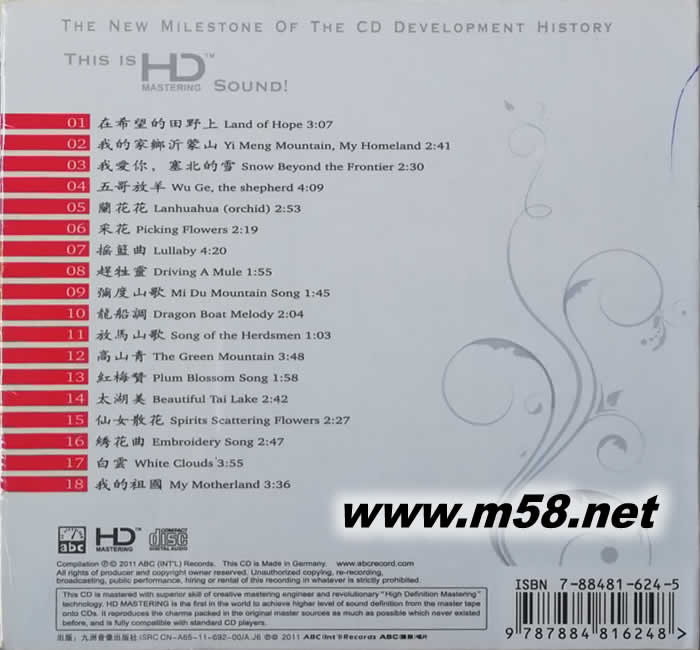 中國金嗓子 模擬母帶聲音6N純銀版CD 德版專輯背面圖片