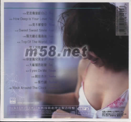 01、 把悲傷留給自己 02、 HOW DEEP LS YOUR LOVE 03、 我不夠愛你 04、 SWEET SWEET SMILE 05、 陽光總在風雨后 06、 TOP OF THE WORLD 07、 單人房雙人床 08、 JAMBALAYA 09、 你是風兒我是沙 10、 大板城的姑娘 11、EYES ON ME 12、 阿拉木汗 13、 紫竹調 14.ROCK AROUND THE CLOCK