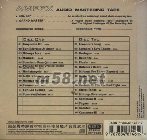 1.Tanguedia 3 2.Sur:Regresso al amor 3.Milonga loca 4.Mumuki 5.Concierto para quinteto 6.Prelude to the cyclical night 7.Michelangelo 8.Leijia`s game 9.Milonga del angel 10.Cammora-1 11.Sur:Los suenos 12.Contrabajissimo 16.CAMMORA-III 15.SOLEDAD 14.FUGATA 13.Cammora-2 12.Milonga picaresque 11.Street tango 10.Prelude to the cyclical night 09.Milonga for three 08.Knife fight 07.Milonga for three 06.Butcher`s death 05.Finale 04.Bailongo 03.Prologue 02.Leonora`s love theme 01.Leonora`s song