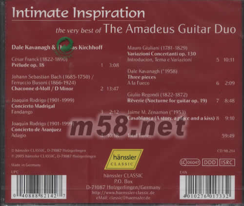 INTIMATE INSPIRATION阿瑪杜斯二重奏精選心靈物語專輯背面圖片