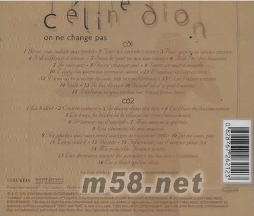 CD 1 01. Ge ne vouus oublie(Inedit) 02. Jous Les secrets(Inedit) 03. Pour gue tu m'aimes encore 04. S'il suffisait d'aimer 05. Sous le vent(en duo avec Garou) 06. Jout l'or des hommes 07. Ge sais pas 08. On ne change pas 09. Dans un autre monde 10. Liggy(Un garcon pas comme les autres) 11. L'amour existe encore 12. Girai ou tu iras(en duo avec jean jacques Goldman) 13. Et je t'aime encore 14. Vole 15. Ge lui Dirai 16. Luand on n'a que l'amour 17. I belive in you(en duo avec Ⅱ Divo)(Bonus Track) CD 2 01. Le ballet 02. Contre nature 03. Ge danse dans ma tete 04. Le blues du businessman 05. Le loup,la biche et le chevalier(Une chanson douce) 06. D'amour ou d'amitie 07. Mon ami m'a quittee 08. Les chemins de ma maison 09. Ne partez pas sans moi(Grand prix de l'Eurovision 1988) 10. Ge ne veux pas 11. Lora sourit 12. Destin 13. Jellement j'ai d'amour pour toi 14. Ma nouvelle Jrance(Inedit) 15. Les derniers seront les premiers(en duo avec j-j. Goldman) 16. Ge n'etait qu'un rece