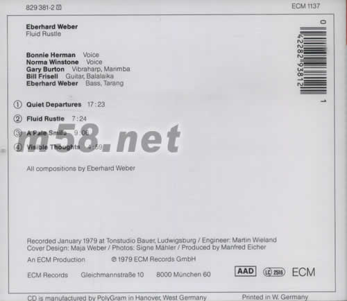 EBERHARD WEBER BONNIE HERMAN NORMA WINSTONE GARY BURTON BILL FRISELL EBERHARD WEBER 1.QUIET DEPARTURES 2.FLUID RUSTLE 3.A PALE SMILE 4.VISIBLE THOUGHTS