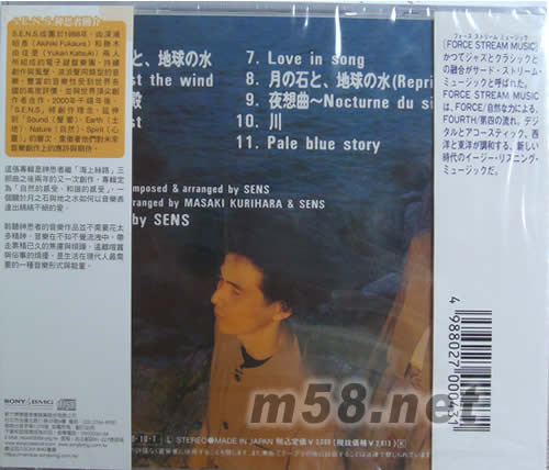 月之石與地之水(日本版)(m58.net) 這張專輯是神思者繼「海上絲路」三部曲之后兩年的又一次創作,專輯定為”自然的感受、和諧的感受”,一個關於月之石與地之水如何以音樂表達出綿綿出不絕的愛。 神思的首部作品“海上絲綢之路”之后兩年的又一次創作活動的匯集。這張專輯對于兩位天才音樂家的創作具有很高的紀念價值。CD所附介紹中將專輯定義為“自然的感觸,和諧的感受”、“…原聲與電聲、東洋與西洋相融合的新音樂”。這種輕音樂(easy-listening)的風格在此后的神思世界中仍有很深的影響。標題曲“月球的石頭地球的水”以及“Tears”“Love in song”等曲子所表現的抒情成分被此后神思的電視劇音樂所沿襲下來。在CD介紹所闡述的特點之外,專輯中原聲器樂音色也十分出彩,首次引入了雙簧管(oboe)和薩克斯的元素。特別值得一提的是,雙簧管成為神思以后作品中必不可少的樂器。勝木還為這張專輯特別在樂迷會會刊第五期發表了寓言風格的故事