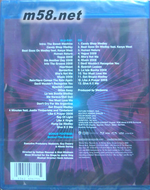 STICKY&SWEET TOUR 歐版RLU-RAY藍光碟專輯背面圖片