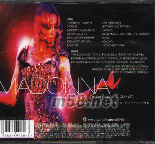 CD 01. THE BEAST WITHIN 02. VOGUE 03. NOBODY KNOWS ME 04. AMERICAN LIFE 05. HOLL YWOOD(REMIX) 06. DIE ANOTHER DAY 07. LAMENT 08. LIKE A PRAYER 09. MOTHER AND FATHER 10. IMAGINE 11. SUSAN MacLEOD/INTO THE GROOVE 12. MUSIC 13. HOLIDAY 14. I LOVE NEW YORK DVD 01. THE DOCUMENTARY CHRONICLING THE ARTIST DURING 02. HER RE-INVENTION WORLD TOUR PLUS BONUS FEATURES 03. INCLUDING NEVER-BEEFORE-SEEN FOOTAGE,AND MORE