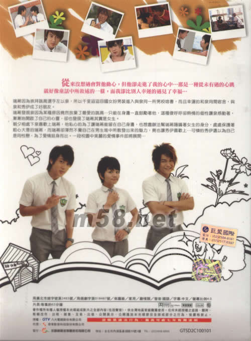 花樣少年少女DVD上套(1-5)(臺(tái)灣版)(m58.net) *八大今年度最強(qiáng)偶像劇,繼【惡作劇之吻】后影迷最期待的浪漫愛情喜劇。 *網(wǎng)羅超人氣偶像團(tuán)體【飛輪海】中最具魅力的吳尊、汪東城以及【S.H.E.】中以【薔薇之戀】獲得各方肯定的Ella共同主演,肯定再掀偶像劇收視熱潮。 *改編自日本暢銷漫畫【偷偷愛著你】,將花樣年華的校園故事,以夢(mèng)幻般的浪漫手法呈現(xiàn),讓小女孩美夢(mèng)成真。 *每個(gè)小女孩在成長(zhǎng)的過程中都會(huì)歷經(jīng)暗戀的過程,面對(duì)心儀的男生,臉紅、怦然心動(dòng)的感覺是少女時(shí)期最甜蜜的記憶,本片將這初戀酸甜的滋味透過偶像劇的演出勾起觀眾甜美的記憶。 【劇情簡(jiǎn)介】 從來沒想過會(huì)對(duì)他動(dòng)心,但他卻走進(jìn)了我的心中… 那是一種從未有過的心跳,就好象童話敘述的一樣, 而我卻比別人幸運(yùn)地遇見了幸福… 瑞莃因?yàn)槌绨萏哌x手左以泉,所以千里迢迢回國(guó)女扮男裝進(jìn)入與泉同一所男校念書,而且幸運(yùn)的和泉同間宿舍,與泉和秀伊成了好朋友。 瑞莃發(fā)現(xiàn)泉因?yàn)槟撤N原因竟然放棄了最愛的跳高…只能在身邊一直鼓勵(lì)著他,這種傻呼呼卻熱情的個(gè)性讓泉感動(dòng)著,漸漸地開啟了自己的心靈,卻也發(fā)現(xiàn)了瑞莃其實(shí)是女生。 除了泉外就只有校醫(yī)梅田發(fā)現(xiàn)了瑞莃是女兒身,他負(fù)責(zé)每天開導(dǎo)著瑞莃訴說對(duì)泉的愛情煩惱,而此時(shí)第三宿舍也由思南帶領(lǐng)著大家向前沖,梅田洞悉著宿舍間充滿逗趣的良性競(jìng)爭(zhēng),一段校園中美麗的愛情事件即將展開…… 集 數(shù):1-5,共5集(全劇15集) 片 數(shù):共 2 片 級(jí) 別:輔導(dǎo)級(jí) 規(guī) 格:D9 x 1 + D5 x 1 片 長(zhǎng):每集約65分鐘 發(fā) 音:國(guó)語 字 幕:繁體中文 螢 幕 比:4:3 音 效:AC3 2.0 Ch 特別說明:每集均附幕后直擊一則