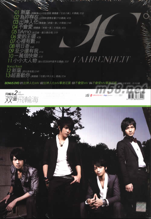 01. 新窩(飛輪海+S.H.E合宿版 偶像劇[公主小妹]片頭曲) 02. 為你存在 03. 出神入化(偶像劇[終極一家]片頭曲) 04. 不會愛(偶像劇[終極一家]片尾曲) 05. TiAmo (炎亞綸、劉力揚(yáng)合唱) 06. 愛的王道 07. 心里有數(shù) 08. 明日香 09. 至少還有我 10. 一萬個快樂 11. 小小大人物(迪士尼2008年鼠年主題曲) Bonus Track 12. 新窩(男生宿舍版) 13. 超喜歡你(偶像劇[花樣少年少女]插曲) BONUS DVD 01. 出神入化 MV 02. 出神入化 MV幕后花絮 03. 不會愛 MV 04. 不會愛 MV幕后花絮