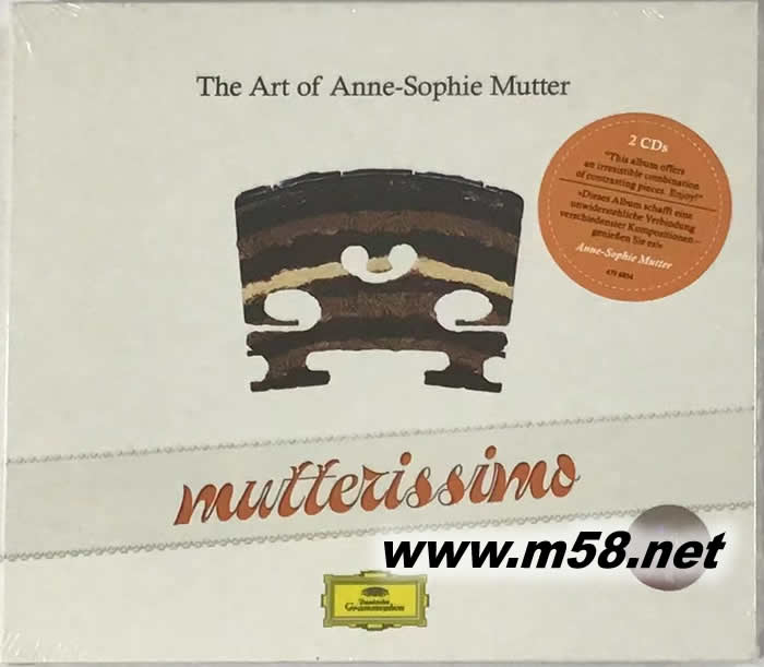 價格為估,以實到貨為準! 穆特 小提琴精選 Mutterissimo THE ART OF ANNE-SOPHIE MUTTER (2CD)(m58.net) Mutterissimo - The Art of Anne-Sophie Mutter is a selection of highlights from her discography, personally picked by Mutter herself, bringing together recordings that date for the most part from the last twenty years. Anne-Sophie Mutter最新2CD精選, 精挑輯錄近20年26首最精彩演奏錄音!