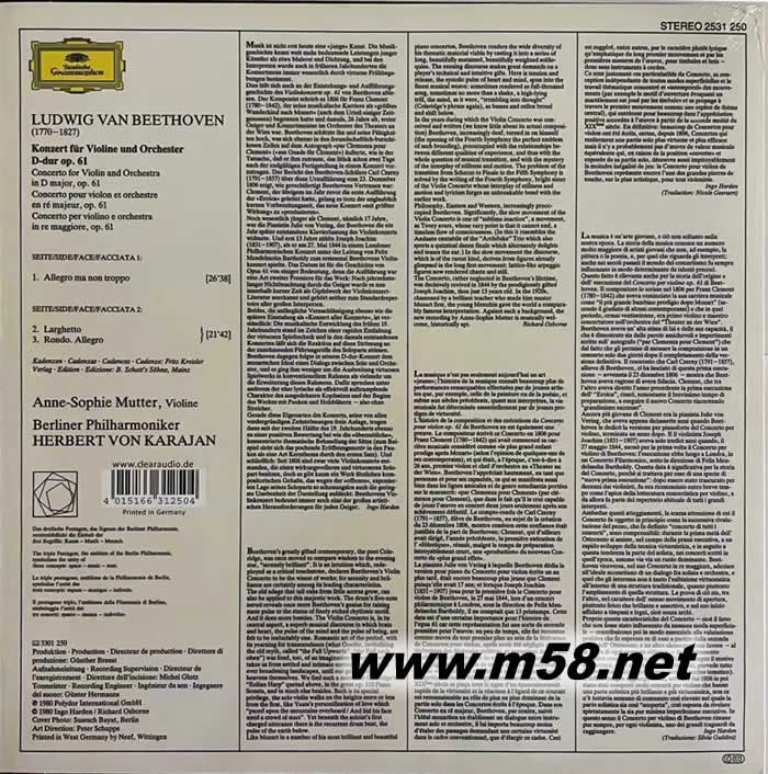 穆特 卡拉揚 柏林愛樂 - 貝多芬 小提琴協奏曲VIOLINKONZERT VIOLIN CONCERTO 黑膠專輯背面圖片