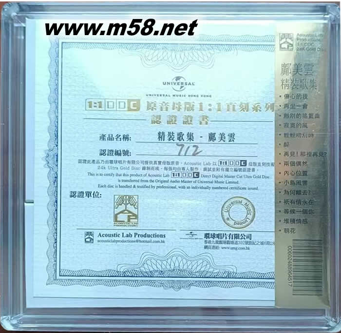 鄺美云 精裝歌集 24K母盤專用CDR1:1母盤直刻CD(m58.net) 有證書限量編號