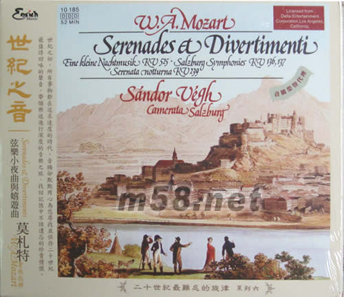 世紀之音莫扎特小夜曲(臺灣版)(m58.net) 2006年是[音樂神童]莫扎特的250周年冥誕紀念,全球掀起一片熱潮.在他短短的三十五年的生涯中完成了各式各類型的樂曲共達六百多首,并確立了古典樂派形式. 專輯中收錄弦樂小夜曲及嬉游曲各兩首,弦樂小夜曲具有社交作用,是包含四個或以上樂章的室內樂風,主要是用于當時貴族的園游會或祝會,曲風華麗且優雅,其中最廣為人知的就是這首編號為kv525的小夜曲,不僅是必備的古典入門曲,理會是電臺點播率極高的曲子,另外兩首嬉游曲同樣是小型樂器的合奏作品,曲風與類型和小夜曲相似,都是作為娛樂用途. 莫扎特.弦樂小夜曲與嬉戲曲 韋格指揮 薩爾茲堡莫扎特音樂院管弦樂器團