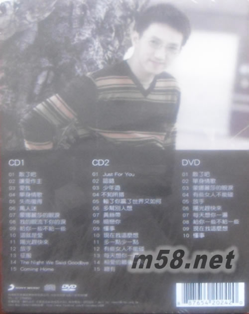 DISK 1 CD 1. 散了吧 2. 讓愛(ài)作主 3. 愛(ài)我 4. 單身情歌 5. 失而復(fù)得 6. 萬(wàn)人迷 7. 蒙娜麗莎的眼淚 8. 我的眼流下你的淚 9. 給你一些不給一些 10. 這就是愛(ài) 11. 陽(yáng)光趕快來(lái) 12. 放手 13. 征服 14. The Night We Said Goodbye 15. Coming Home DISK 2 CD 1. Just For You 2. 認(rèn)錯(cuò) 3. 少年游 4. 不知所措 5. 輸了你贏了世界又如何 6. 多幫別人想 7. 黃絲帶 8. 暗戀你 9. 懂事 10. 現(xiàn)在我這么想 11. 多一點(diǎn)少一點(diǎn) 12. 有些女人不能碰 13. 每天想你一遍 14. 相愛(ài)的最后一天 15. 總有 DISK 3 DVD 1. 散了吧 2. 單身情歌 3. 蒙娜麗莎的眼淚 4. 有些女人不能碰 5. 放手 6. 陽(yáng)光趕快來(lái) 7. 每天想你一遍 8. 給你一些不給一些 9. 現(xiàn)在我這么想 10. 懂事