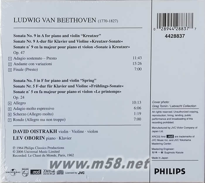 Sonata No.5 in F for piano and violin "Spring" - Op. 24 04. Allegro 05. Adagio molto espressivo 06. Scherzo (Allegro molto) 07. Rondo (Allegro ma non troppo)