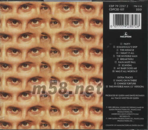 01. PARTY 02. KHASHOGGI'S SHIP 03. THE MIRACLE 04. I WANT IT ALL 05. THE INVISIBLE MAN 06. BREAKTHRU 07. RAIN MUST FALL 08. SCANDAL 09. MY BABY DOES ME 10. WAS IT ALL WORTH IT EXTRA TRACKS 11. HANG ON IN THERE 12. CHINESE TORTURE 13. THE INVISIBLE MAN(12'VERSION)