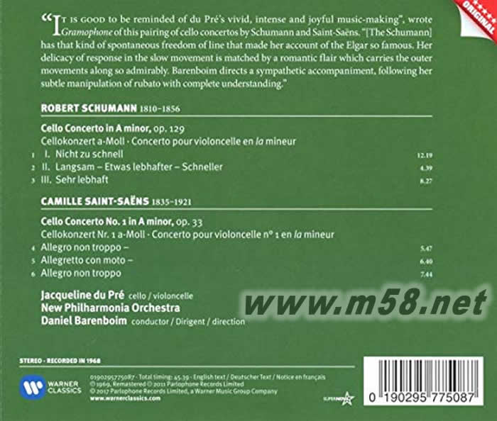舒曼 圣桑大提琴協奏曲Schumann: Cello Concerto(m58.net)