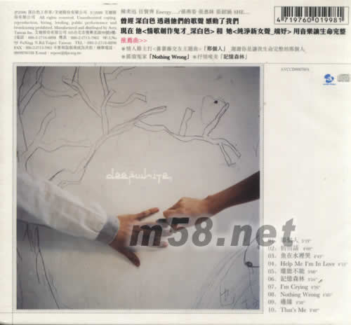 價格為估,以實到貨為準! 深白色2人組 首張同名創作專輯(m58.net) 就是不想一個人! 音樂,拯救無聊與孤單 最受矚目的實力派音樂組合[深白色2人組]首張同名創作專輯 陳奕迅 任賢齊 ENERGY..../孫燕姿 張惠妹 張韶涵 SHE...... 曾經 深白色 透過他們的歌聲感動了我們現在 他(情歌創作鬼才_深白色)和 她(純凈新女聲_端妤)用音樂讓生命完整 推薦曲)) 情人節主打(蕃薯藤交友主題曲)[那個人]_謝謝你是讓我生命完整的那個人 搖滾冤家[NOTHING WRONG] 抒情唯美[記憶森林]