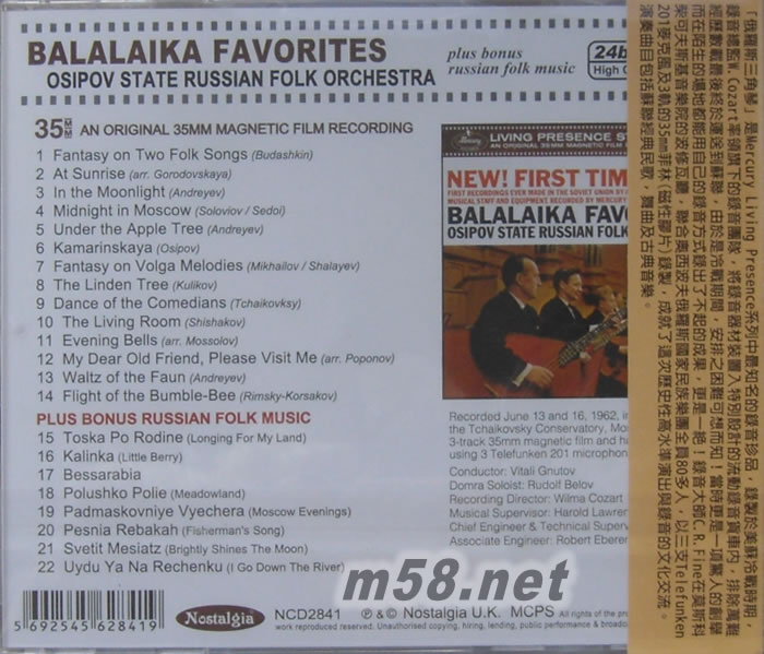 所屬歌手:   [OSIPOV STATE RUSSIAN FOLK ORCHESTRA 奧西波夫俄羅斯國家民樂團]