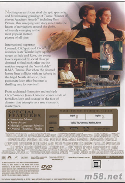 價格為估,以實到貨為準! TITANIC鐵達尼號(電影DVD)(m58.net) 杜比數碼AC-3(5.1)THX原裝母帶制作 中英文等多種字幕選擇