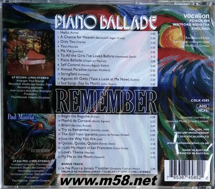 保羅莫里埃 深情回憶 RAIN AND TEARS專輯背面圖片