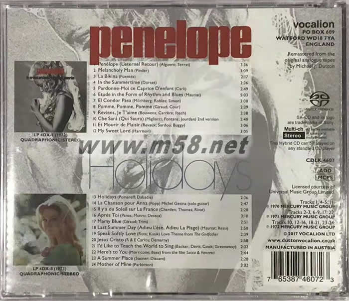 樂韻閑情 Penelope/Holidays SACD專輯背面圖片