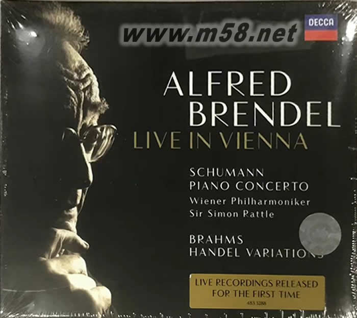 鋼琴 布蘭德?tīng)柧S也納現(xiàn)場(chǎng)音樂(lè)會(huì) LIVE IN VIENNA(m58.net) 布蘭德?tīng)?,鋼?/ 拉圖 指揮 維也納愛(ài)樂(lè)管弦樂(lè)團(tuán) Alfred Brendel / Wiener Philharmoniker/Sir Simon Rattle 專輯收錄兩份布蘭德?tīng)柕默F(xiàn)場(chǎng)演出錄音,皆為首度發(fā)行,內(nèi)容均取自?shī)W地利廣播公司(ORF)的存檔紀(jì)錄。其中舒曼《A小調(diào)鋼琴協(xié)奏曲》為2001年3月布蘭德?tīng)柶呤畾q生日音樂(lè)會(huì)的演出,由拉圖(Sir Simon Rattle)指揮維也納愛(ài)樂(lè)管弦樂(lè)團(tuán)協(xié)奏。布蘭德?tīng)柋硎荆骸格雎?tīng)這個(gè)現(xiàn)場(chǎng)錄音,我認(rèn)為聽(tīng)到了我想聽(tīng)的」,顯然大師對(duì)於自己的演奏也相當(dāng)滿意。另一部布拉姆斯《韓德?tīng)栔黝}變奏曲》則是1979年6月於維也納音樂(lè)廳(Konzerthaus Wien)的演出紀(jì)錄。 舒曼的《A小調(diào)鋼琴協(xié)奏曲》有別於當(dāng)時(shí)代以超技為主的其他作品,獨(dú)樹(shù)一格。歷經(jīng)長(zhǎng)達(dá)十四年(1827-1841年)的構(gòu)思,期間與克拉拉新婚,並受妻子激勵(lì),歷時(shí)五年(1841-1845年)才完成了這部作品。原為單樂(lè)章的《A小調(diào)鋼琴與管弦樂(lè)合奏幻想曲》,在相隔四年后加上另外兩個(gè)樂(lè)章,成為完整三樂(lè)章的協(xié)奏曲;整部作品以單一主題貫穿而達(dá)致全曲的統(tǒng)一性。 布拉姆斯的《韓德?tīng)栔黝}變奏曲》作品24完成於1861年,包含二十五個(gè)變奏和一段規(guī)模龐大的賦格。主題選自韓德?tīng)?733年於倫敦所出版的《大鍵琴組曲》第二冊(cè)中之第一號(hào)降B大調(diào)組曲,此曲不僅巧妙結(jié)合巴洛克時(shí)期的裝飾及對(duì)位手法,也擁有古典時(shí)期的架構(gòu)與浪漫時(shí)期的精神,展現(xiàn)理性與情感之間的完美調(diào)和,是布拉姆斯所有變奏曲中極具代表性的創(chuàng)作。 舒曼的鋼琴協(xié)奏曲要求演奏者須具備詩(shī)意、精湛的演奏技藝,以及優(yōu)雅而節(jié)制的掌控力,布蘭德?tīng)栆云涑錆M熱情、富有洞察力及令人耳目一新的詮釋通過(guò)考驗(yàn)?!俄n德?tīng)栔黝}變奏曲》被視為是貝多芬《迪亞貝利變奏曲》之后該類樂(lè)曲中最輝煌的作品,具有豐富多樣的性格、色彩與精湛的樂(lè)思,其中「賦格」樂(lè)段之對(duì)位法與爆發(fā)力都令人讚嘆。即使華格納也不得不承認(rèn)此曲令人印象深刻:「知道如何掌控的人,雖是以舊有之格式,仍能開(kāi)創(chuàng)新局」。布蘭德?tīng)枏牟辉朵浺羰忆浹u《韓德?tīng)栔黝}變奏曲》,因此本輯的這份錄音便成為他的首次商業(yè)發(fā)行。專輯的錄音母帶曾一度遺失,布蘭德?tīng)柋硎荆骸负芨吲d能夠?qū)か@這些未經(jīng)剪輯的現(xiàn)場(chǎng)錄音,而我也樂(lè)見(jiàn)它們的發(fā)行」。