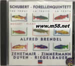 舒伯特:鱒魚五重奏FORELLENQUINTETT(m58.net) 阿爾弗雷德?布倫德爾的《舒伯特:鱒魚五重奏》在2009年的《企鵝古典唱片指南》中推薦為三星。 阿爾弗雷德?布倫德爾(Alfred Brendel):生于1931年,奧地利鋼琴家,1948年他在維也納登臺(tái),并榮獲意大利布索尼國際鋼琴比賽獎(jiǎng),在奧地利開始聞名。1948年至1958年錄制了李斯特、莫扎特、舒伯特、勛伯格的鋼琴協(xié)奏曲和獨(dú)奏曲的唱片,又編訂了貝多芬的全部鋼琴作品,成為世界聞名的鋼琴家。50年代在世界各地舉辦音樂會(huì),并錄制了大量唱片。60年代開始,除演奏與錄音外,還在維也納音樂學(xué)院開辦高級(jí)班,培養(yǎng)了很多青年鋼琴家。布倫德爾是二戰(zhàn)后成名的鋼琴家中年齡較長(zhǎng)者,至今已在舞臺(tái)上馳騁了近半個(gè)世紀(jì)。他可以說是目前鋼琴家中精神派的代表人物。 《鱒魚》是舒伯特在1817年創(chuàng)作的著名藝術(shù)歌曲。他在以后創(chuàng)作的《A大調(diào)鋼琴五重奏》的第四樂章即是根據(jù)此曲寫成的變奏曲,故又被稱為《鱒魚五重奏》。這部為鋼琴與大、中、小提琴和低音提琴所做的作品共分五個(gè)樂章,以第四樂章最為著名。作者用分節(jié)歌的敘事方式表達(dá)了他對(duì)鱒魚的命運(yùn)無限同情與惋惜的心情,揭示了歌詞深刻的寓意:善良與單純往往要被虛偽與邪惡所害。 莫扎特《弦樂小夜曲》是十八世紀(jì)中葉器樂小夜曲的典范,莫扎特于1787 年8月24日在維也納完成,并以當(dāng)時(shí)最時(shí)髦的德文用語Eine Kleine Nachtmusik(一首小夜曲)命名。最早為弦樂合奏,后被改編為弦樂五重奏和弦樂四重奏,尤以弦樂四重奏最為流行,是莫扎特所作十多首組曲型小夜曲中最受歡迎的一首。