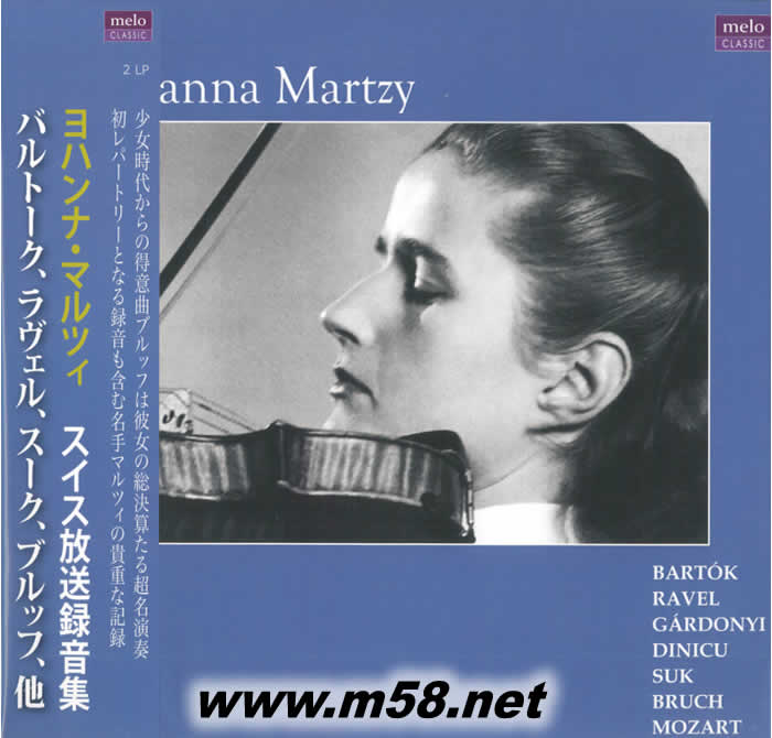現場演奏會Live Recording : 1st October, 1947 Geneve 1947年小提琴與鋼琴 雙黑膠日本版(m58.net) Johanna Martzy violin Doris Rossiaud, Piano 女小提琴家Johanna Martzy是20世紀小提家中的佼佼者。 Martzy 1924年出生于羅馬尼亞,6歲開始學小提琴,8歲進入匈牙利布達斯音樂學院。1944年,德軍入侵匈牙利時,她試圖逃亡,不幸被捕,被奧軍拘留2年,釋放后赴瑞士。1947年在日內瓦國際小提琴比賽中獲得首獎,名聲鵲起,隨后在歐洲各地巡回演出,極受歡迎。晚年,她熱心室樂演奏,1966年起與鋼琴家哈伊杜合作表演二重奏。 瑪茨一生灌有25張唱片。MARTZY的演奏風格總是恰到好處,不放縱,不拘謹,柔而不嬌,甜而不膩,太美了!