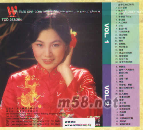 01 愛你在心口難開 02 好好愛我 03 楓葉情 04 巧合 05 未曾留下地址 06 雪山盟 07 大江東去 08 交換 09 歌迷小姐 10 何日君再來 11 岷江夜曲 12 我不管 13 聞笛 14 采檳榔 15 秋的懷念 16 重逢 17 我在靜靜等你 18 落葉飄飄 19 秋虹升起 20 愛字大家共用 01 意難忘 02 總有一天等到你 03 我愛口哨 04 流云 05 多看一眼 06 寒星 07 再會吧原野 08 夏日假期玫瑰花 09 呼喚 10 出人頭地 11 往事難追憶 12 塵夢 13 不了緣 14 愿嫁漢家郎 15 默默的相思 16 春的夢 17 踏夢 18 我要為你歌唱 19 倆相依 20 瘋狂的周末