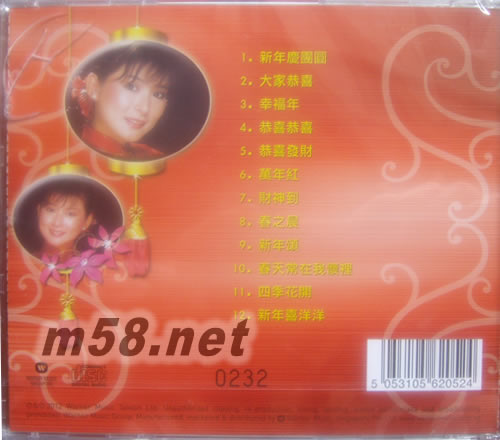 01. 新年慶團圓 02. 大家恭喜 03. 幸福年 04. 恭喜恭喜 05. 恭喜發財 06. 萬年紅 07. 財神到 08. 春之晨 09. 新年頌 10. 春天常在我懷里 11. 四季花開 12. 新年喜洋洋