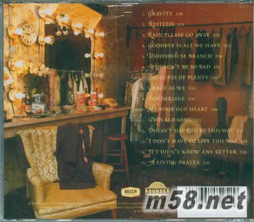 01 Gravity 02 Restless 03 Rain Please Go Away 04 Goodbye Is All We Have 05 Unionhouse Branch 06 Wouldn't Be So Bad 07 Pastures Of Plenty 08 Crazy As Me 09 Borderline 10 My Poor Old Heart 11 This Sad Song 12 Doesn't Have To Be This Way 13 I Don't Have To Live This Way 14 If I Didn't Know Any Better 15 A Living Prayer