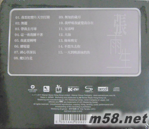 Greatest Hits (華納XRCD+SHMCD系列)(m58.net) 華納唱片 首次發(fā)行 極品錄音 不朽杰作 經(jīng)由日本XRCD匠心獨(dú)運(yùn)的母盤處理技術(shù), 配以SHM應(yīng)用於LCD屏幕上的透明聚碳酸酯作印製物料製作CD碟層。 兩者互融優(yōu)點(diǎn),相得益彰。 為追尋極致級完美聲效的歌迷之選! 1988-1995 當(dāng)華納唱片還是飛碟唱片,他在這里出道及成長,唱歌、寫歌、做音樂,曾經(jīng)他被要求,也曾在這里實(shí)現(xiàn)夢想。他的作品就像他的人,有溫暖關(guān)懷的日光面,和掙扎深沈的月光面,反應(yīng)在令人熟悉的「帶我去月球」、「我想把整片天空打開」,及被遺落的「妹妹晚安」、等歌曲中。我們珍惜任何珍貴的聲音,特別收進(jìn)雨生在錄音過程的記憶,爽朗的笑聲彷彿依然迴盪。