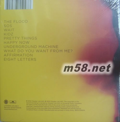 1. The Flood 驚濤駭浪 2. SOS 求救信號 3. Wait 等待 4. Kidz 孩子 5. Pretty Things 美麗的東西 6. Happy Now 現在很開心 7. Underground Machine 地下機器 8. What Do You Want From Me? 你要我怎么做? 9. Affirmation 肯定 10. Eight Letters 八個字母