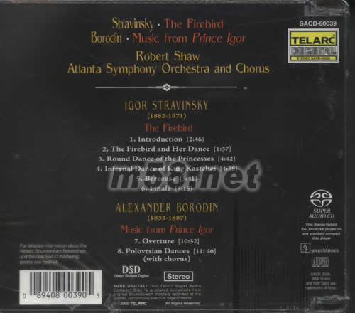 LGOR STRAVINSKY (1882-1971) THE FIREDIRD 1.INTROBUCTION 2.THE FIREDIRD AND HER DANCE 3.ROUND DANCE OF THE PRINCESSES 4.INFERNAL DANCE OF KING KASTCHEI 5.BERCEUSE 6.FINALE ALEXANDER BORODIN (1833-1887) MUSIC FROM PRINCE LGOR 7.OVERTURE 8.POLOVTSIAN DANCES (WITH CHORUS)