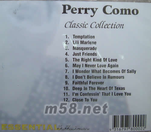 價格為估,以實到貨為準! CLASSIC COLLECTION(m58.net) Perry Como(佩里·科莫) 是美國二戰后至搖滾升起的50年代中期的最偉大的流行歌手之一。美國 20 世紀深受歡迎的傳奇歌王。他于1912年出生在賓夕法尼亞,在家鄉的時候,是個有點小名氣的會唱歌的理發師。21歲的時候便跟隨演出團四處旅行。30年代中期,他意外的得到一家叫做Beat the band的流行電臺的差事。但終止與1942年。之后他主持了CBS電臺的一個叫Super Club的節目,同時開始在好萊塢兼差。 Perry Como真正的成功開始于1945年,當年他的單曲《Till the end of time》10周里停在排行榜的頂端,并成為當年最熱門歌曲。之后10年,他的歌曲不斷進入榜單,并成績卓越。2001年5月12日,Perry Como在他佛羅里達的家中,靜悄悄地逝于睡夢之中。Perry Como曾獲得第1屆格萊美音樂獎(1959)最佳男藝人獎。這首《And I love you so》是他最著名的歌曲之一。也被無數歌手翻唱過。