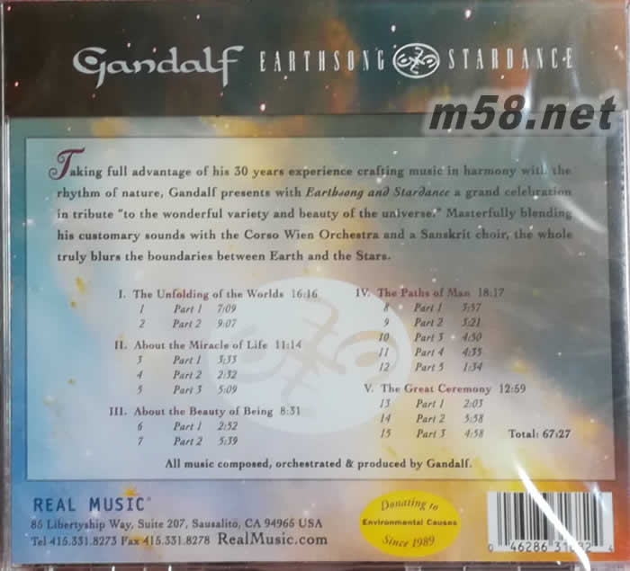 Earthsong & Stardance地球之歌 新世紀純音樂(m58.net) 本專輯REAL唱片公司官方試聽網址:片段http://www.realmusic.com/component/maian15/?view=album&album=135
