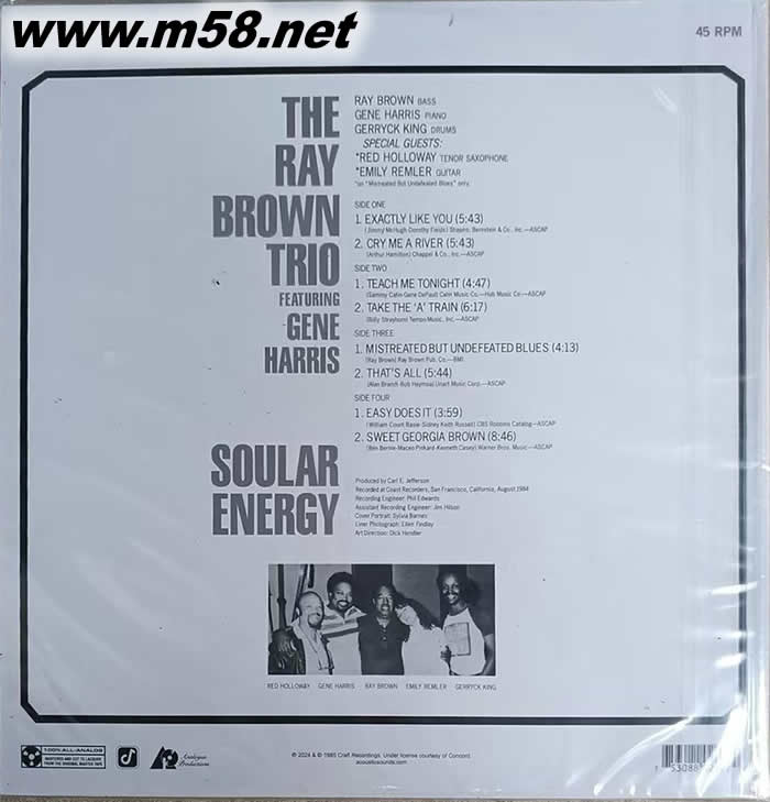Soular Energy 大提琴五重奏 45轉(zhuǎn)雙黑膠(m58.net) Ray Brown, bass Gene Harris, piano Gerryck King, drums Red Holloway, tenor sax Emily Remler, guitar
