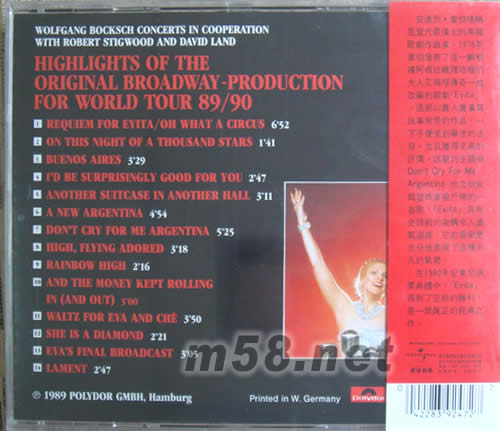 艾薇塔EVITA專輯背面圖片