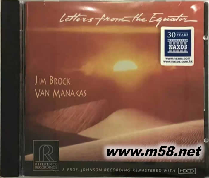 吉姆 布洛克 - 赤道來信Jim Brock - Letters From The Equator HDCD(m58.net) 打擊樂器大師吉姆?布洛克(Jim Brock)與薩克斯天才凡?馬納卡斯(Van Manakas)首次傾情合作。許多參與TAS天碟《熱帶風情》制作的優秀制作人員也同時加盟此張唱片。 《赤道來信》融入了原汁原味的民族音樂,如拉丁音樂。聆聽此唱片,你會感受到打擊樂的激情動感,體會到爵士樂的平緩流暢,優美的旋律縈繞耳際,久久不能忘懷。對于愛音樂的你來說,這張唱片一定會給你帶來不一樣的驚喜。