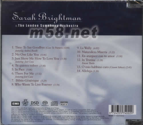 TIME TO SAY GOODBYE SACD專輯背面圖片