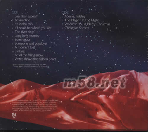 CD 1 1.LESS THAN A PEARL 2.AMARANTINE 3.IT'S IN THE RAIN 4.IF IL COULD BE WHERE YOU ARE 5.THE RIVER SINGS 6.LONG LONG JOURNEY 7.SUMIREGUSA 8.SOMEONE SAID GOODBYE 9.A MOMENT LOST 10.DRIFTING 11.AMID THE FLLING SNOW 12.WATER SHOWS THE HIDDEN HEART CD 2 1.ADESTE FIDELES 2.THE MAGIC OF THE NIGHT 3.WE WISH YOU A MERRY CHRISTMAS 4.CHRISTMAS SECRETS