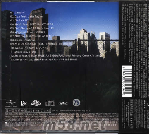 1. Cruzin’ 2. Cuz feat. Lafa Taylar 3. “HANA頌” 4. 夏之花feat. SPECIAL OTHERS 5. Dub Song of 16 Bars feat. PJ 6. Why not? feat.名取香 7. NOENA feat. Yoshiki of 姬神 8. Eddie would go 9. Mic Doesn’t Lie feat. Tarantula(Spontania) 10. Apple Pie feat. L-VOKAL 11. Discoteque ‘80s 12. Heal feat. 伊藤由奈‚WISE‚PJ‚BIGGA RAIJI and Primary Color Allstars 13. After the Laughter feat. 光永亮太 and光永泰一朗