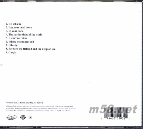 1. It's all a lie 2. Lay your head down 3. In your back 4. The harder ships of the world 5. It ain't a crime 6. Where no endings end 7. Liberty 8. Between the flatland and the caspian sea 9. Caspia