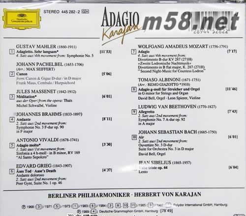 ADAGIO 卡拉揚(yáng) 柔板專輯背面圖片