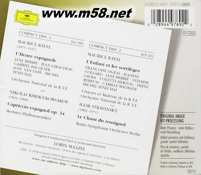 CD 1 1. L'heure espagnole Composer:RAVEL, JOSEPH-MAURICE 2. Capriccio espagnol, Op. 34 Composer:RIMSKY-KORSAKOV, NIKOLAI CD 2 1. L'enfant et les sortilèges Composer:RAVEL, JOSEPH-MAURICE 2. Chant du rossignol Composer:STRAVINSKY, IGOR